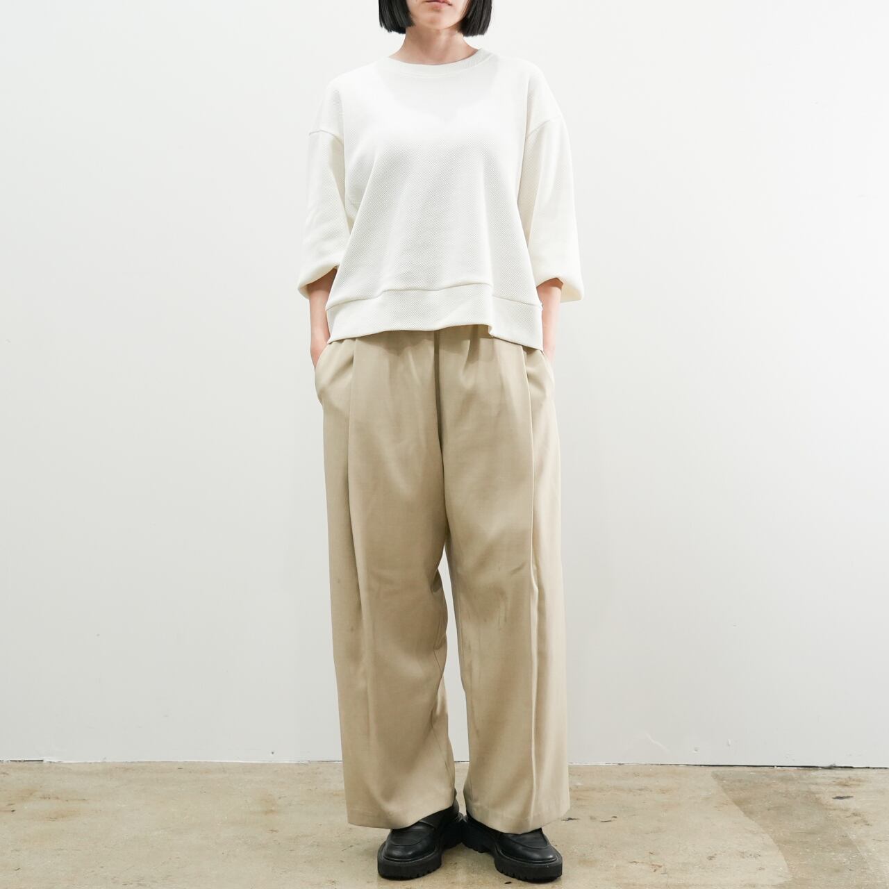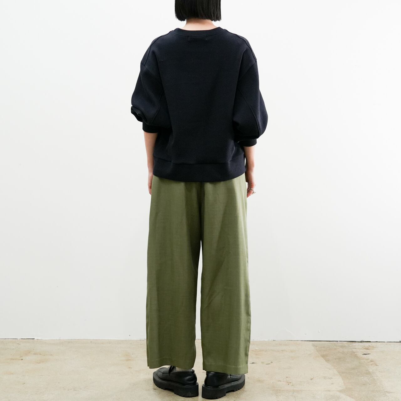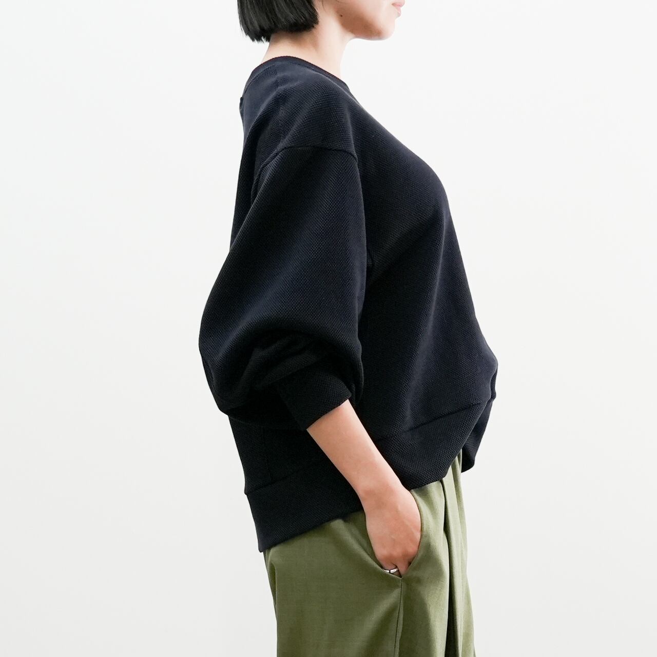 落ち感のあるドロップショルダーと程よくゆるい袖が、こなれた抜け感を演出。