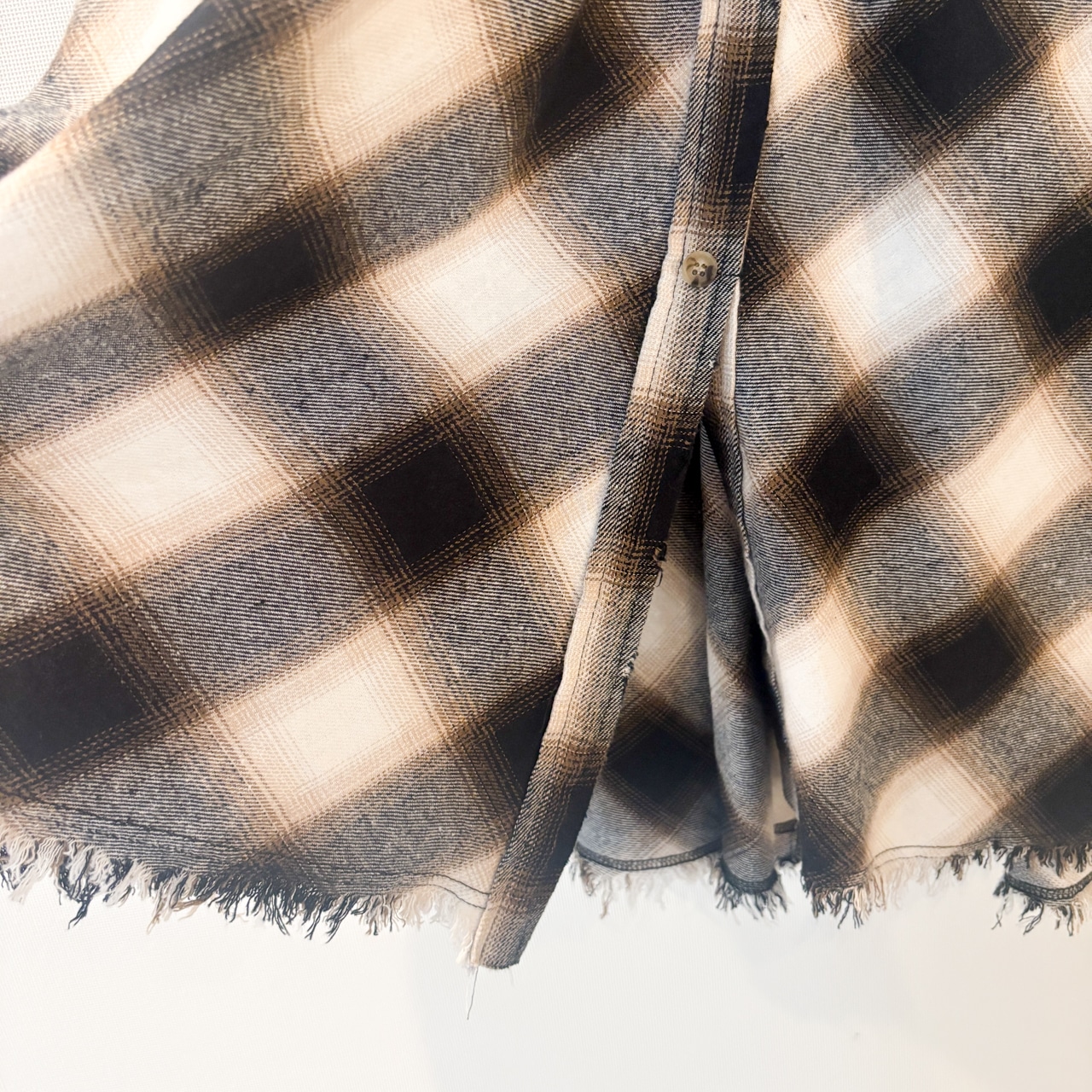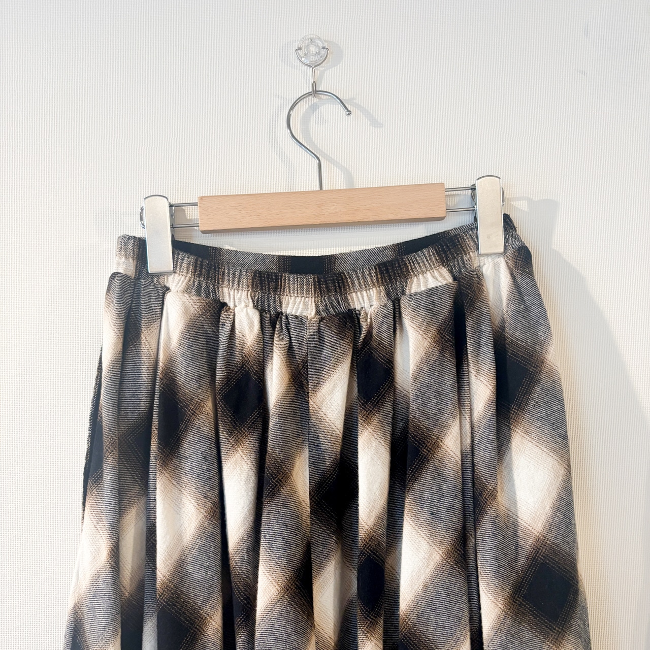 グラデーションのように表現されたオンブレチェックが目を惹くロングスカート。