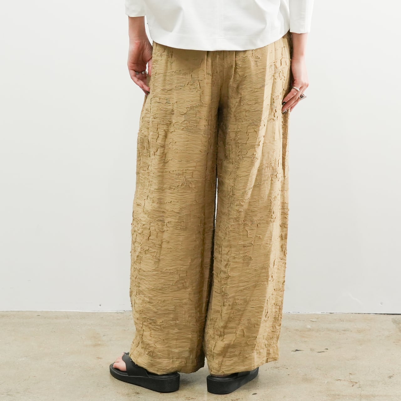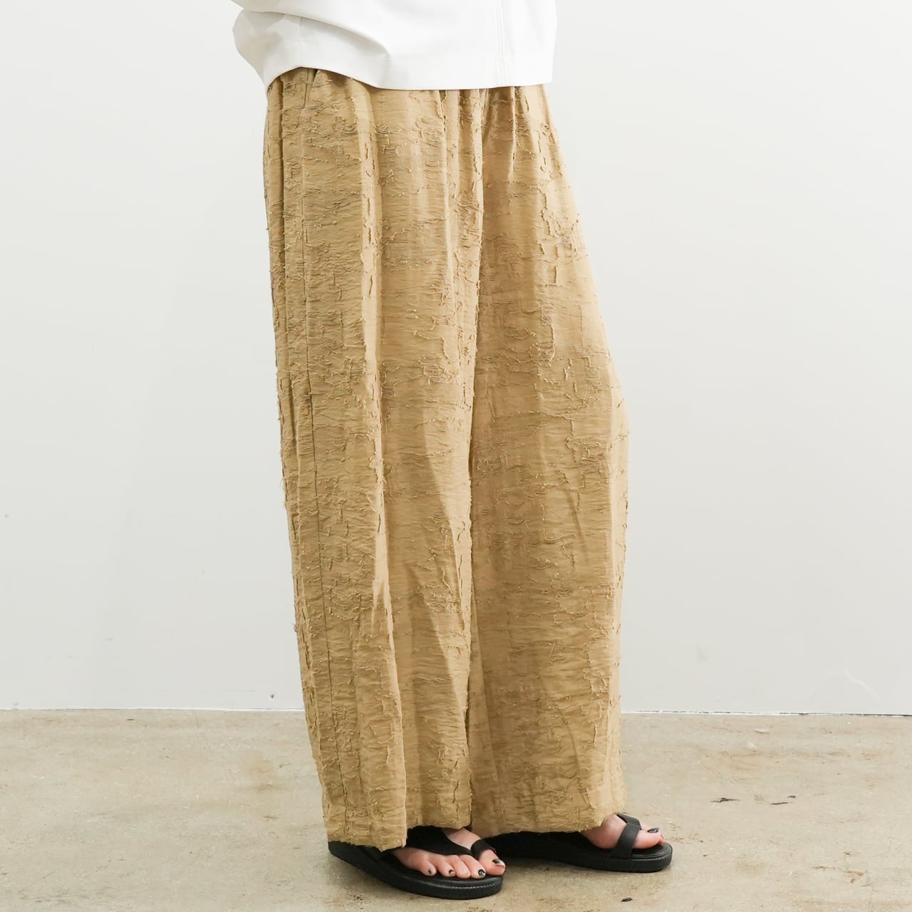 表情豊かなジャガード織りが魅力のリラックスパンツ。