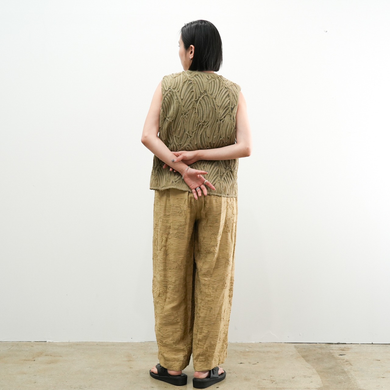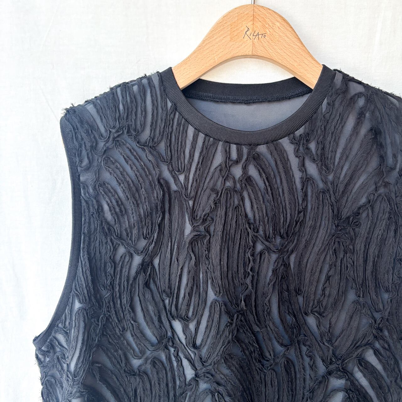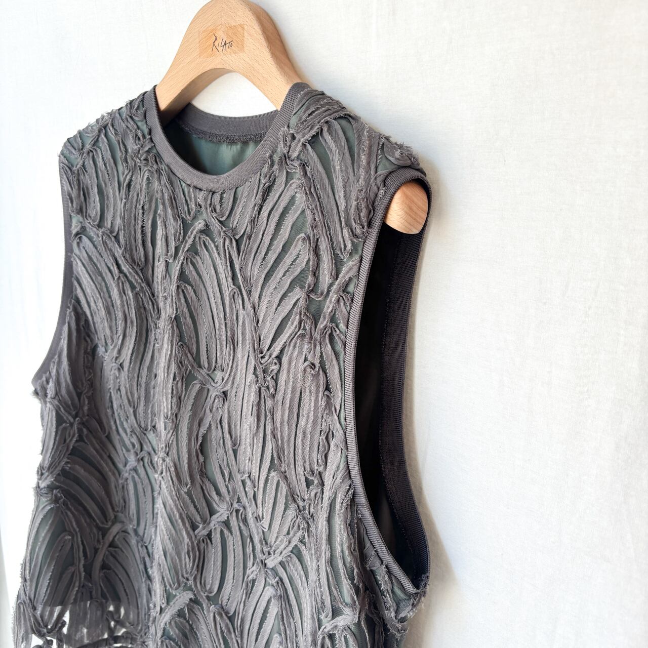 立体感たっぷりの刺繍デザインが目を惹く、存在感のあるノースリーブトップス。