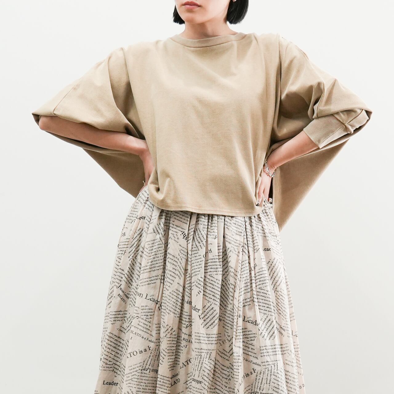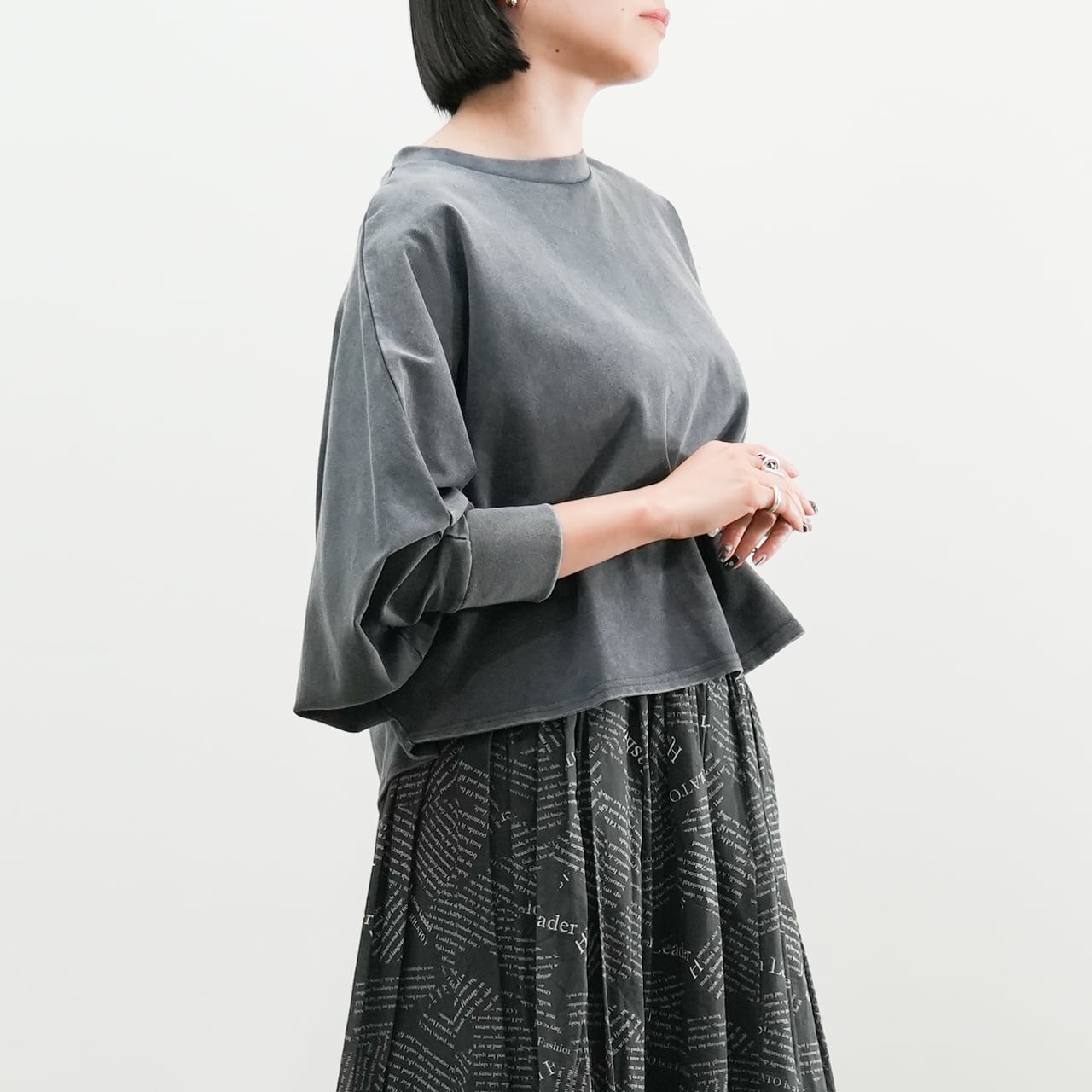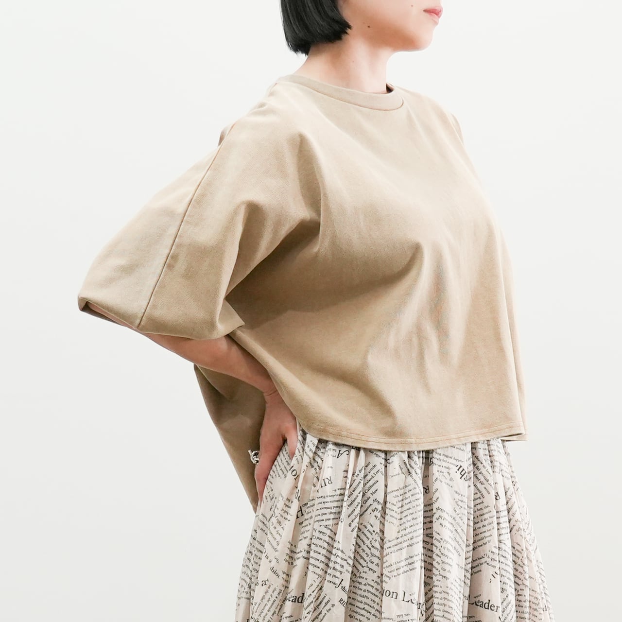 ピグメント加工クロップド丈ドルマンプルオーバー(R25398)