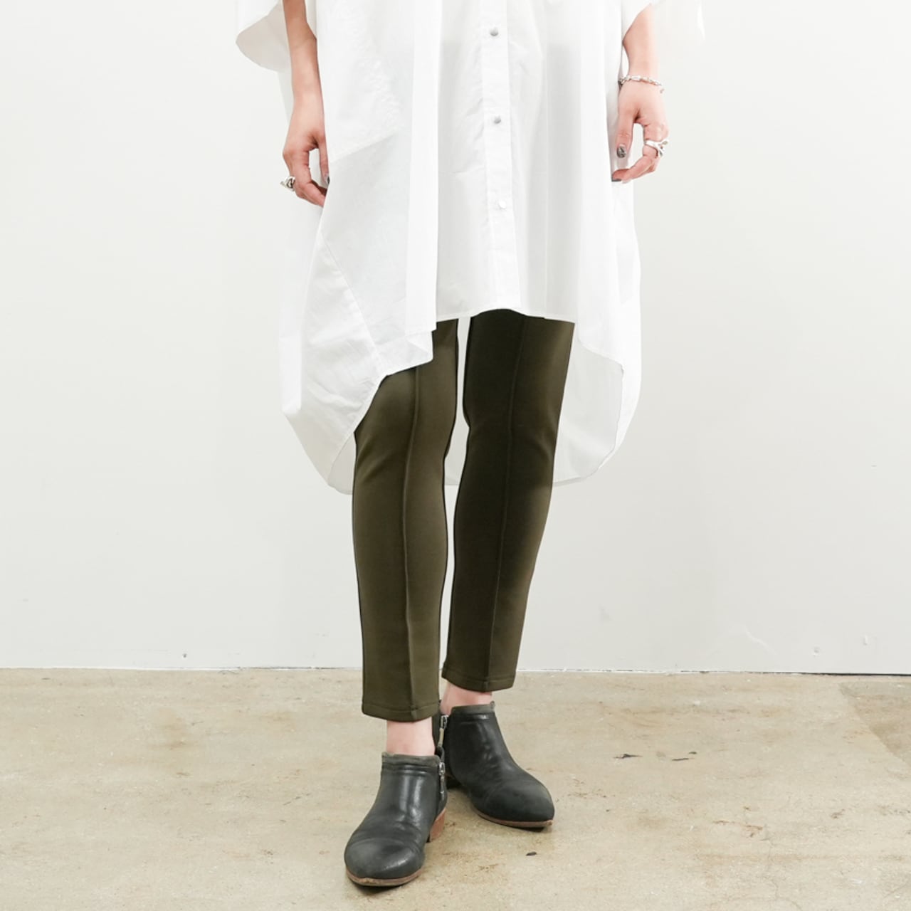 ロング丈のシャツやチュニックとの相性も良く、レイヤードスタイルにも重宝します。