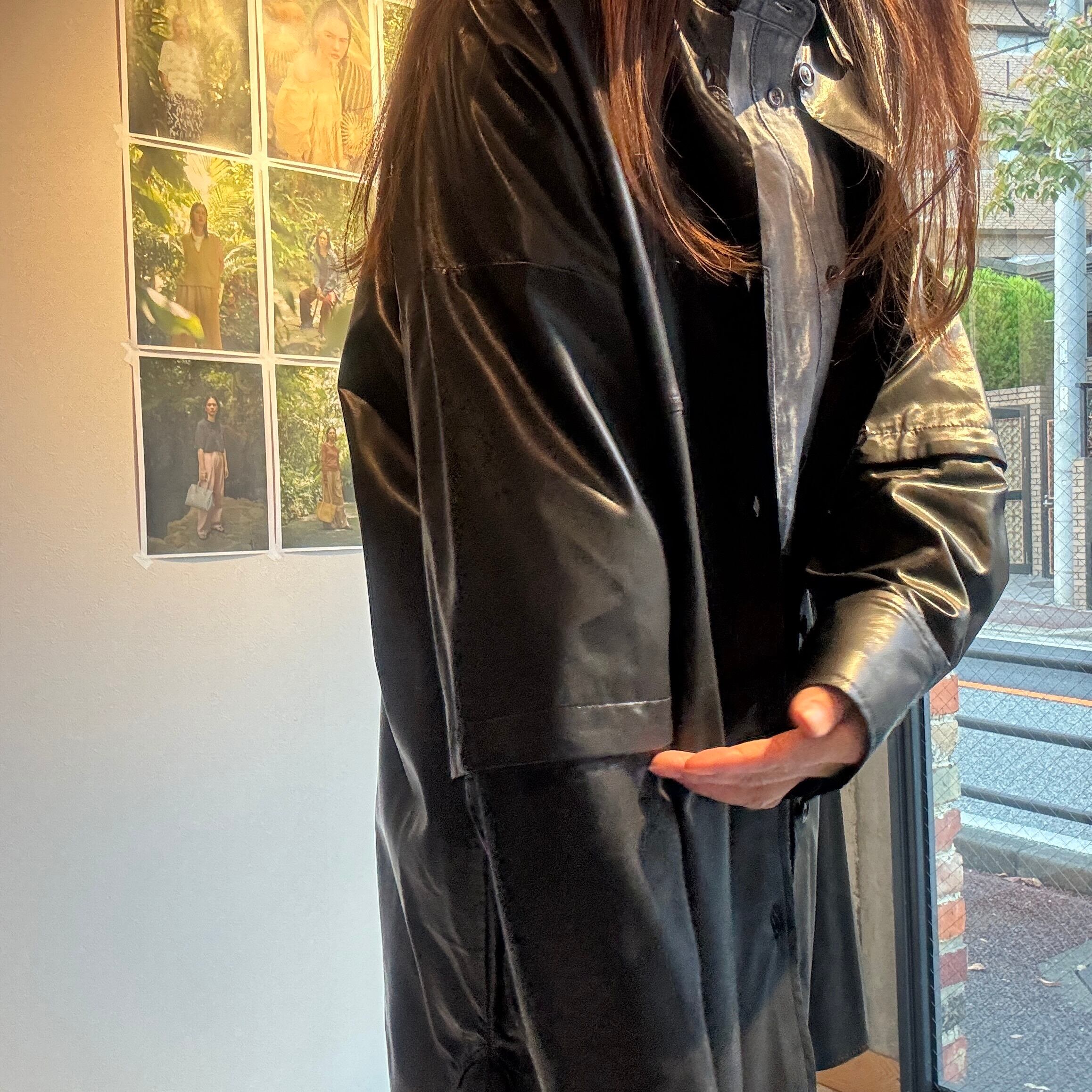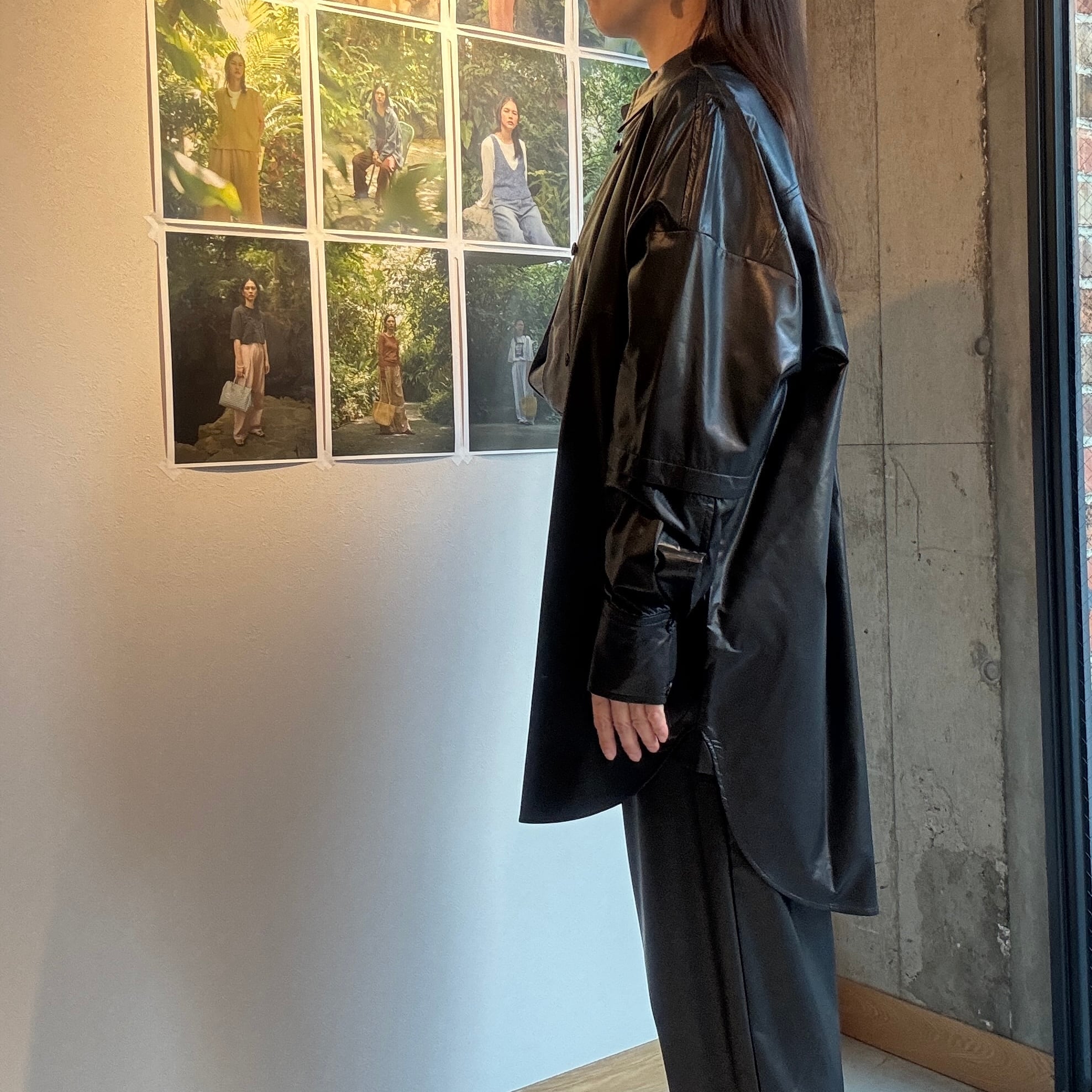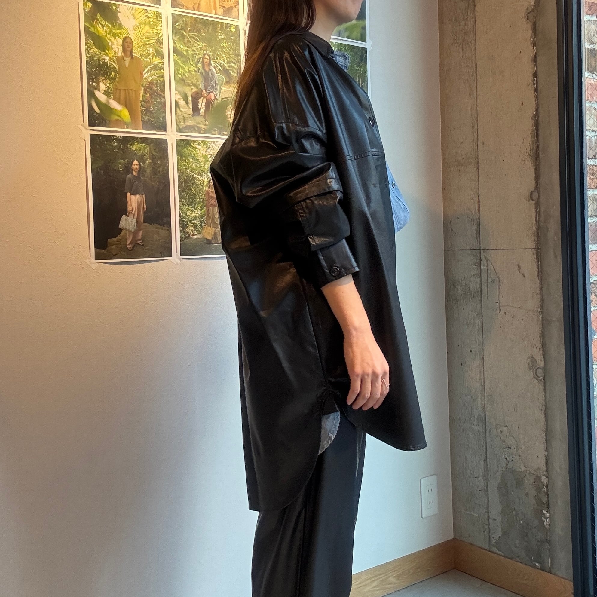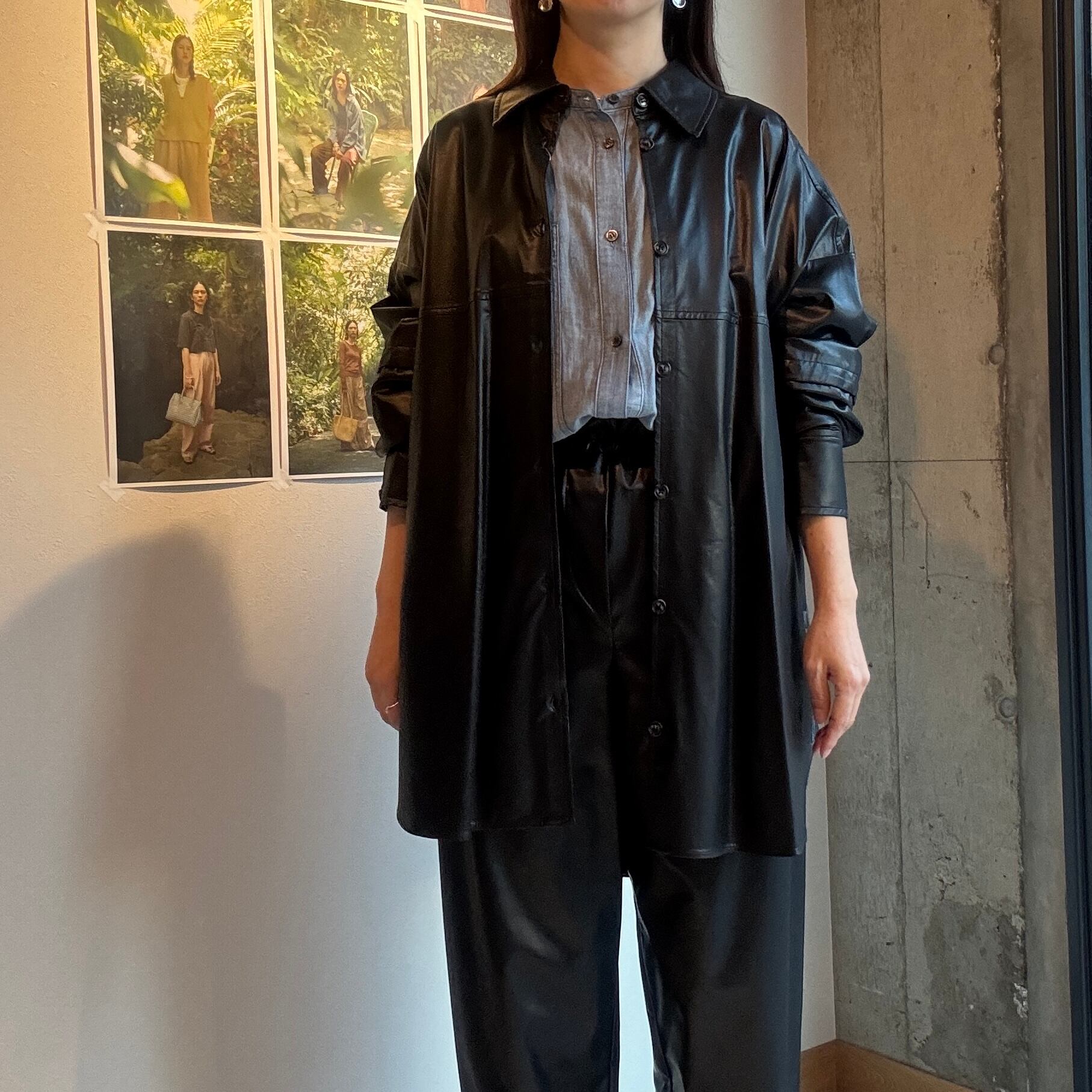上品なツヤ感としなやかな質感が魅力のエコレザーシャツジャケット。