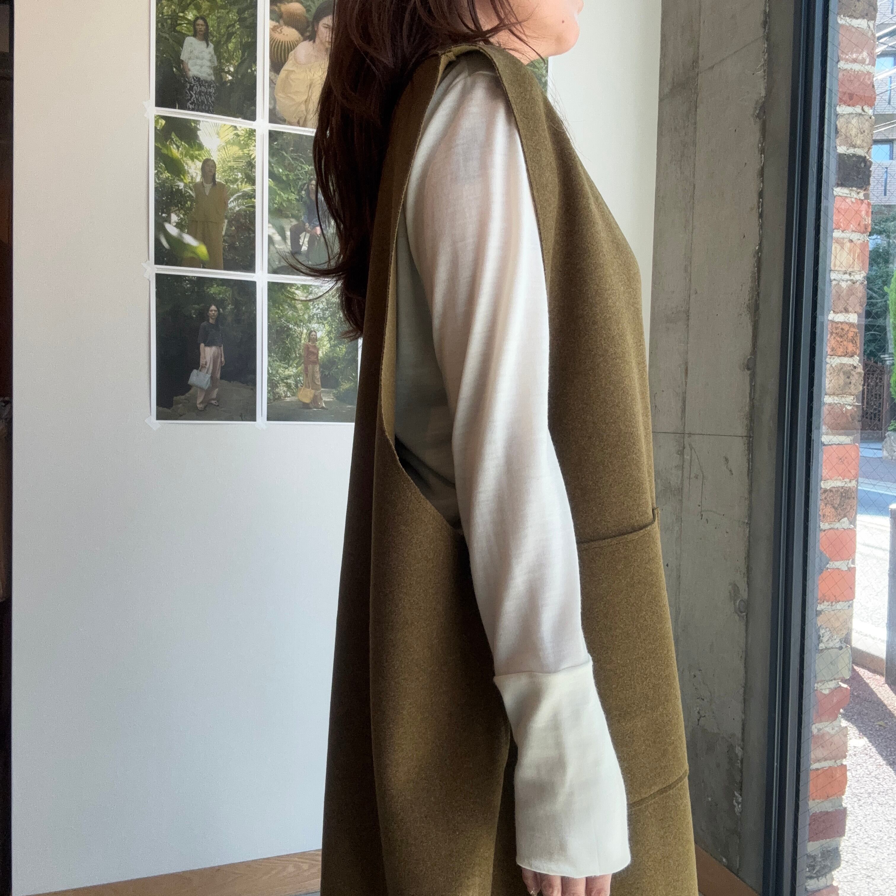 深めのアームホールと滑らかな落ち感で、ニットやシャツなど厚手のアイテムとのレイヤードも快適に。