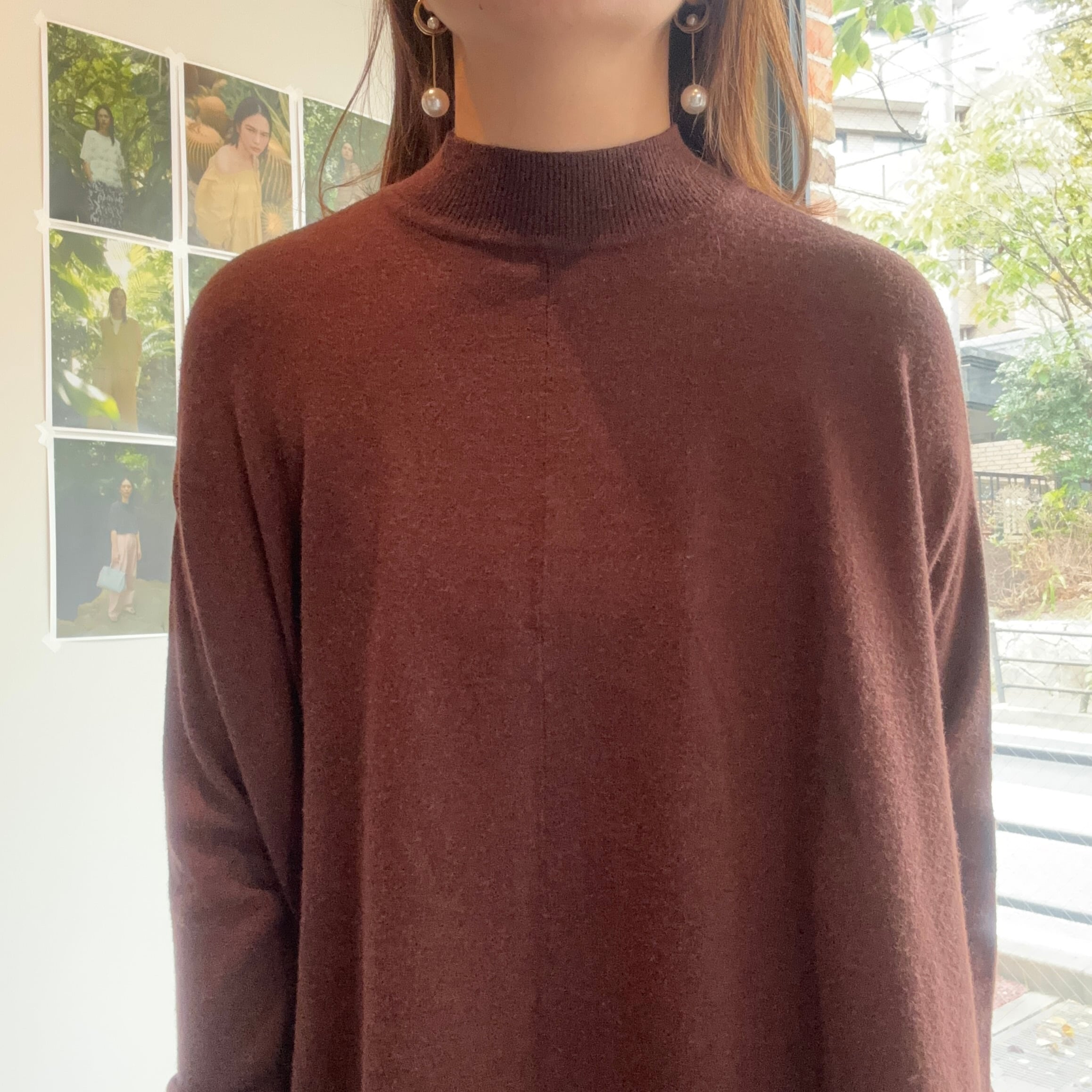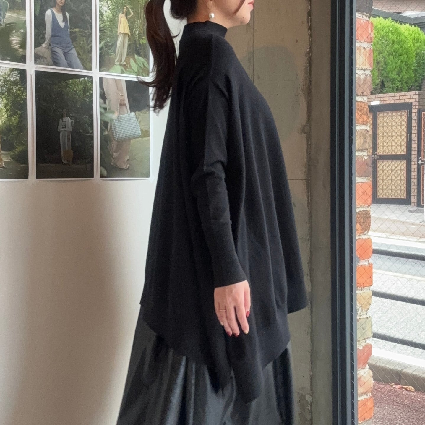 首元まで包み込むハイネックデザインは、締めつけ感がなく、やさしく首元に沿う着心地。