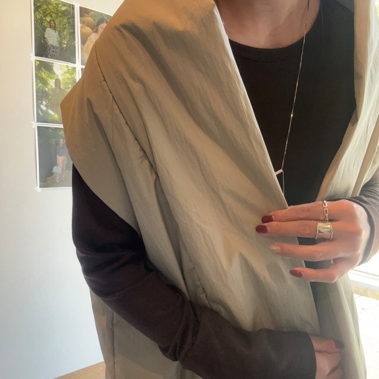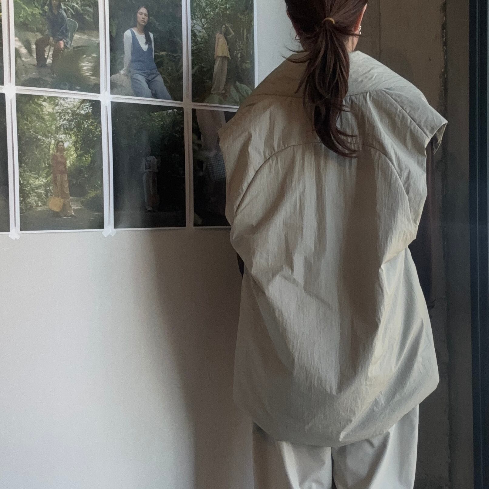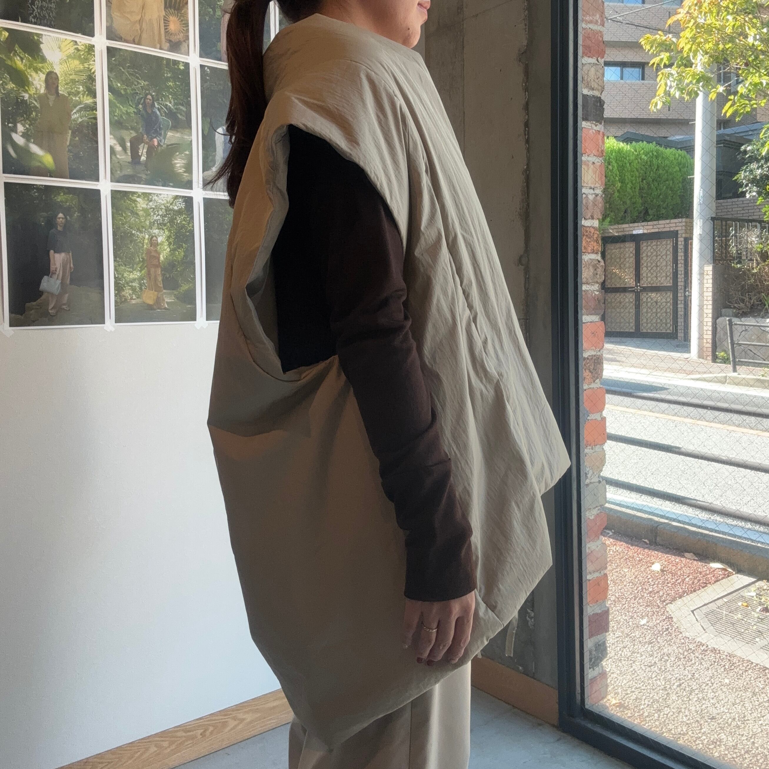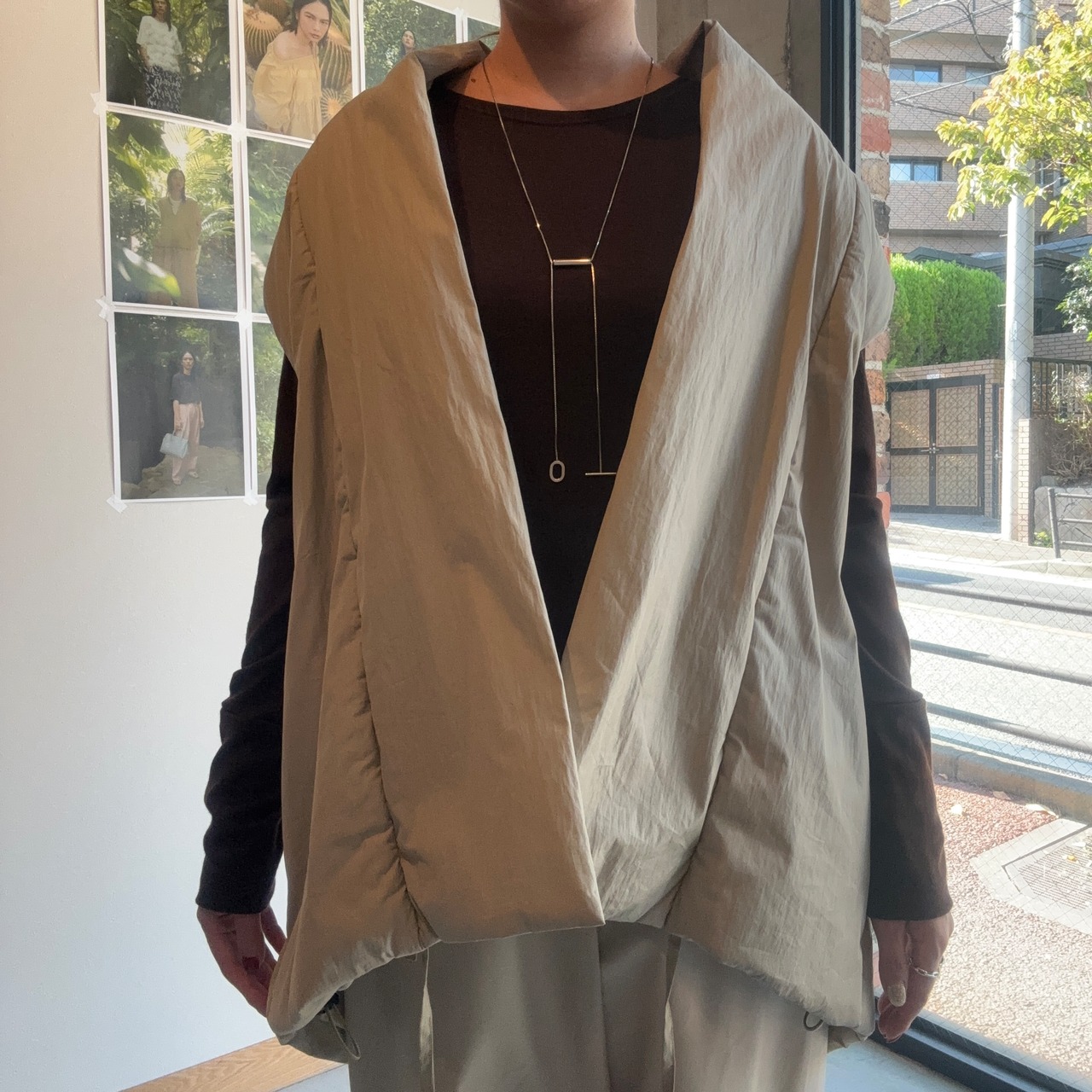 立体的なフォルムが印象的な、モードな中綿ベスト。