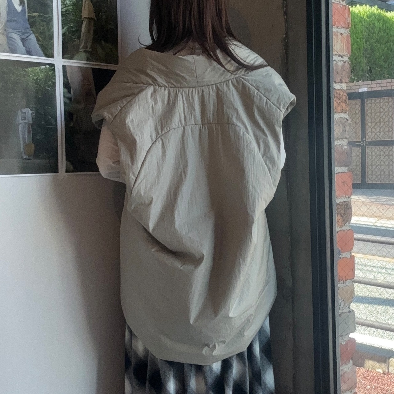 アームホールを広めに設定しているため、スウェットやニットの上からもストレスなく羽織れるデザイン。