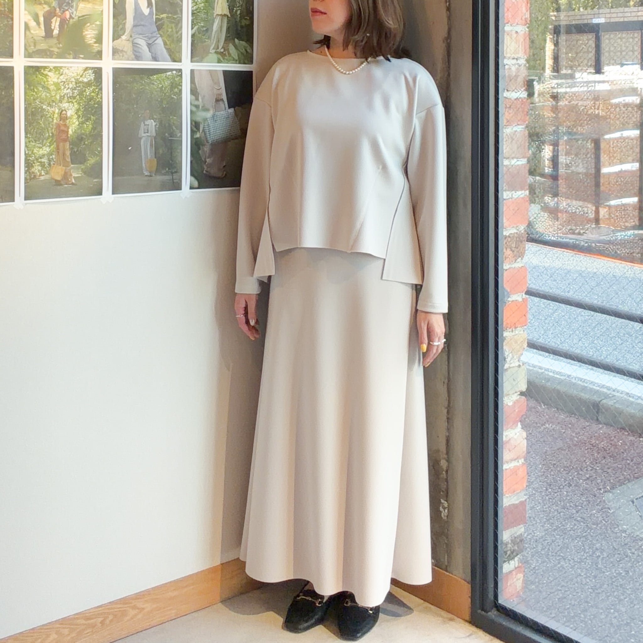 一枚で着てもバランス良く上品な雰囲気に仕上がっています。