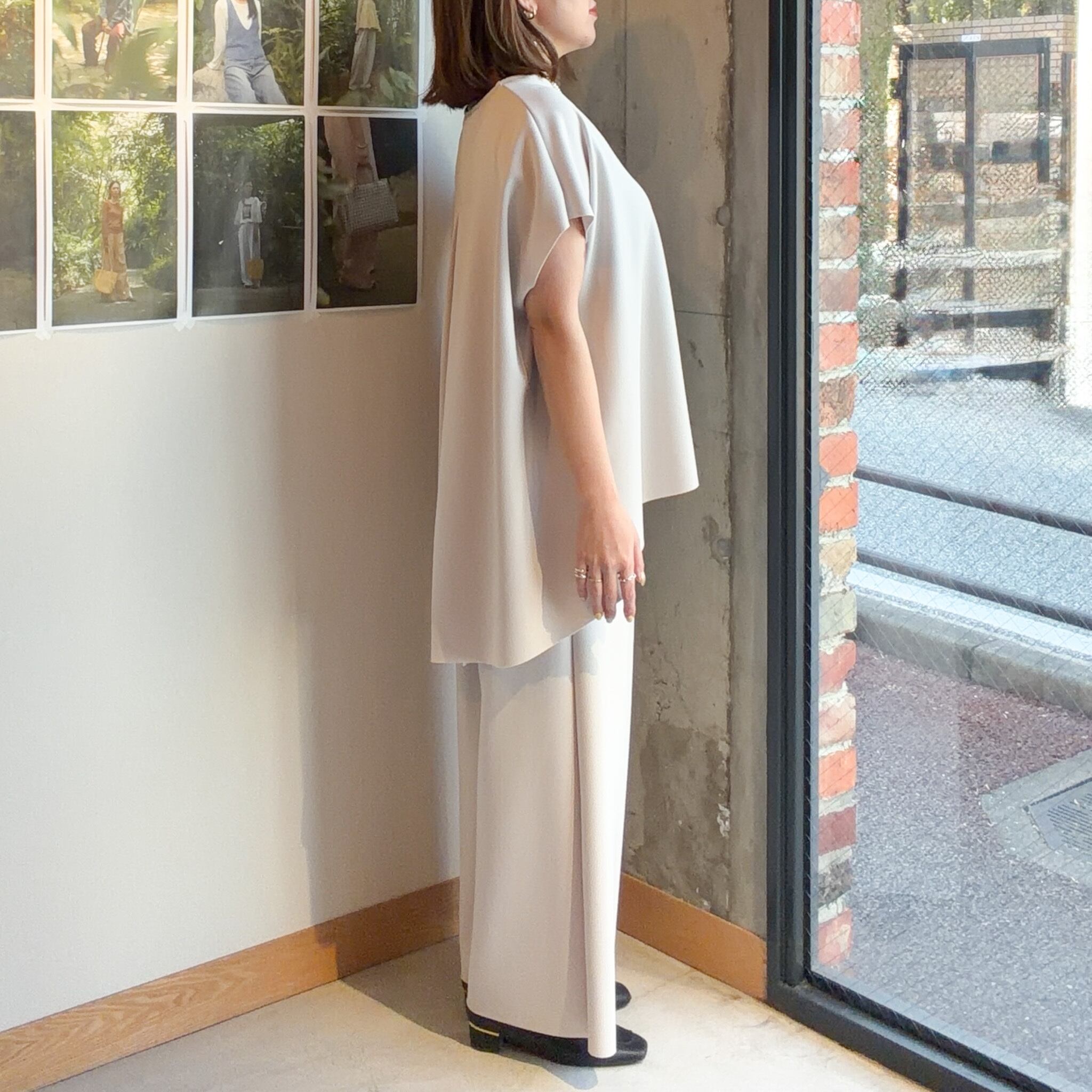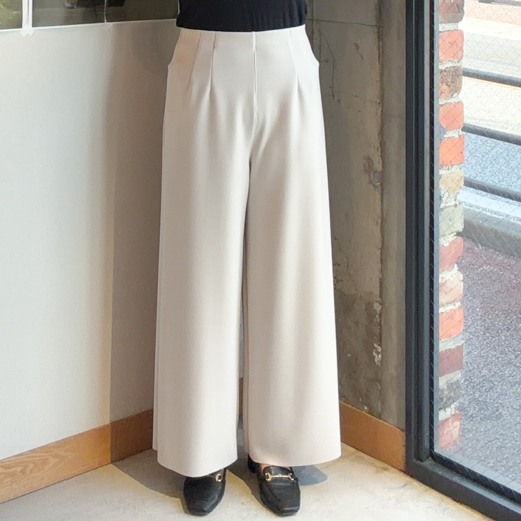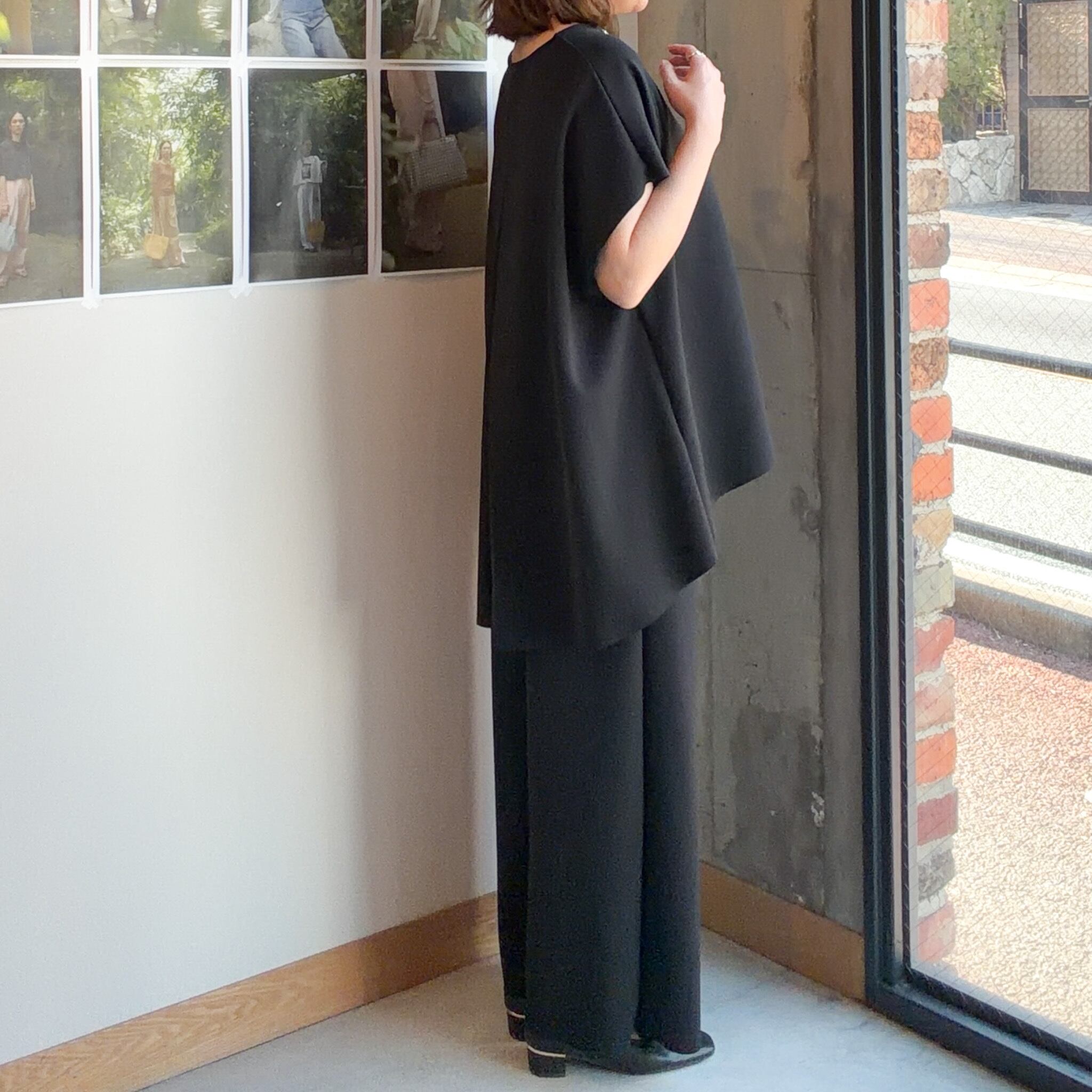 動くたびにきれいなドレープが生まれ、リラックス感がありながらも上品さを感じさせる一本です。