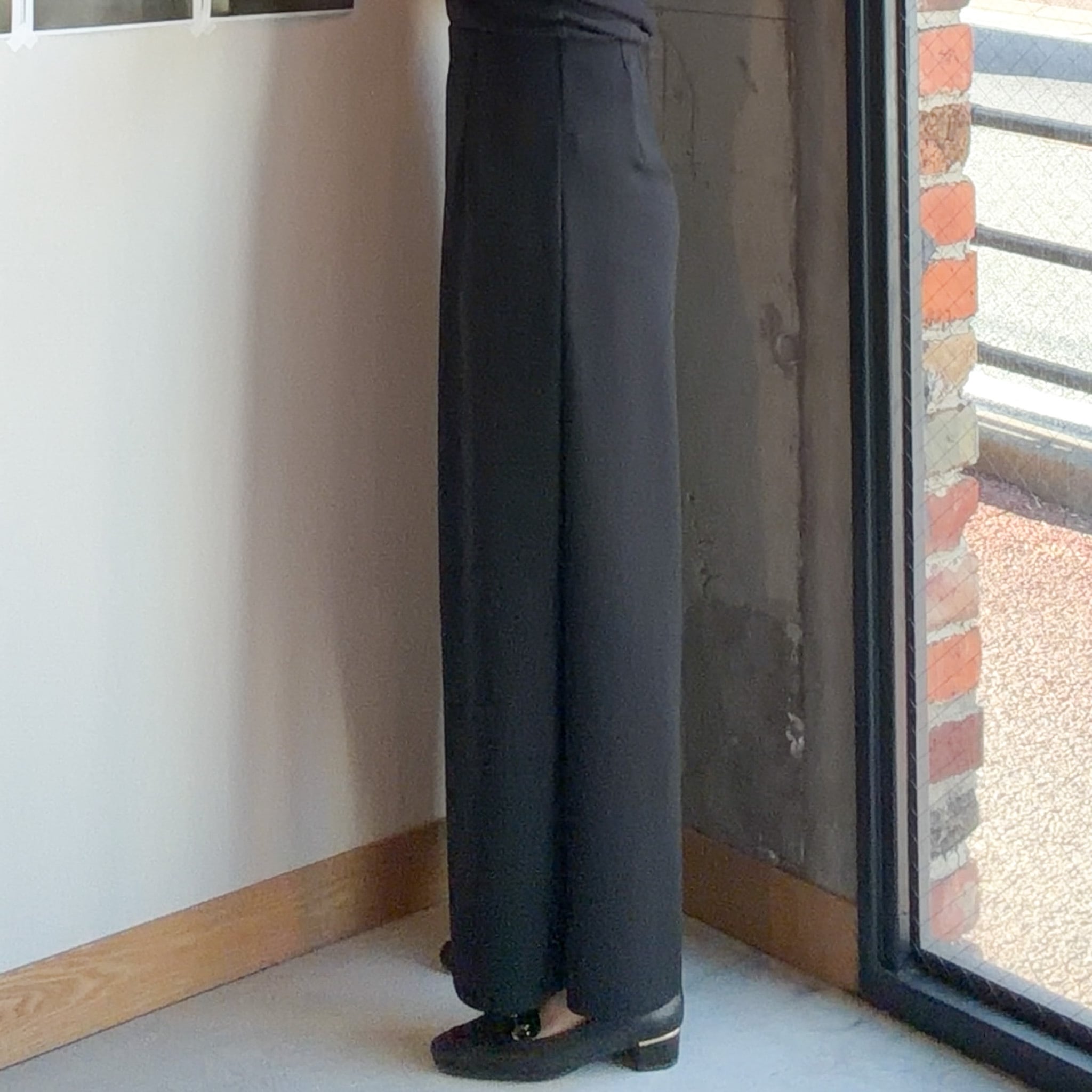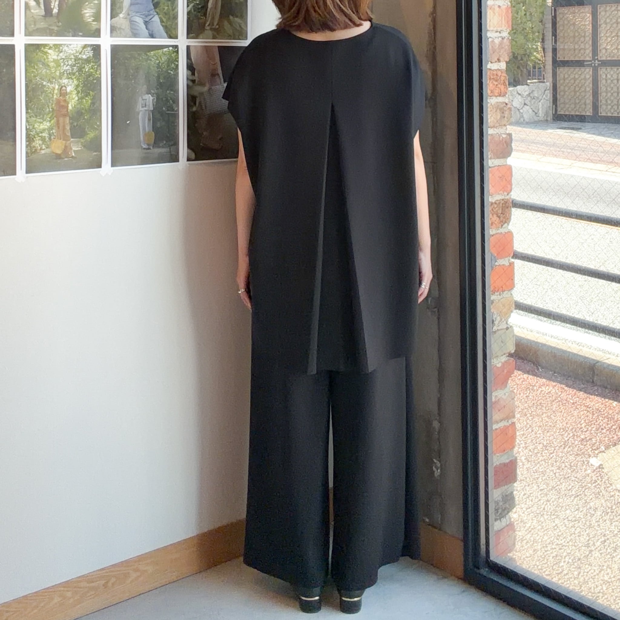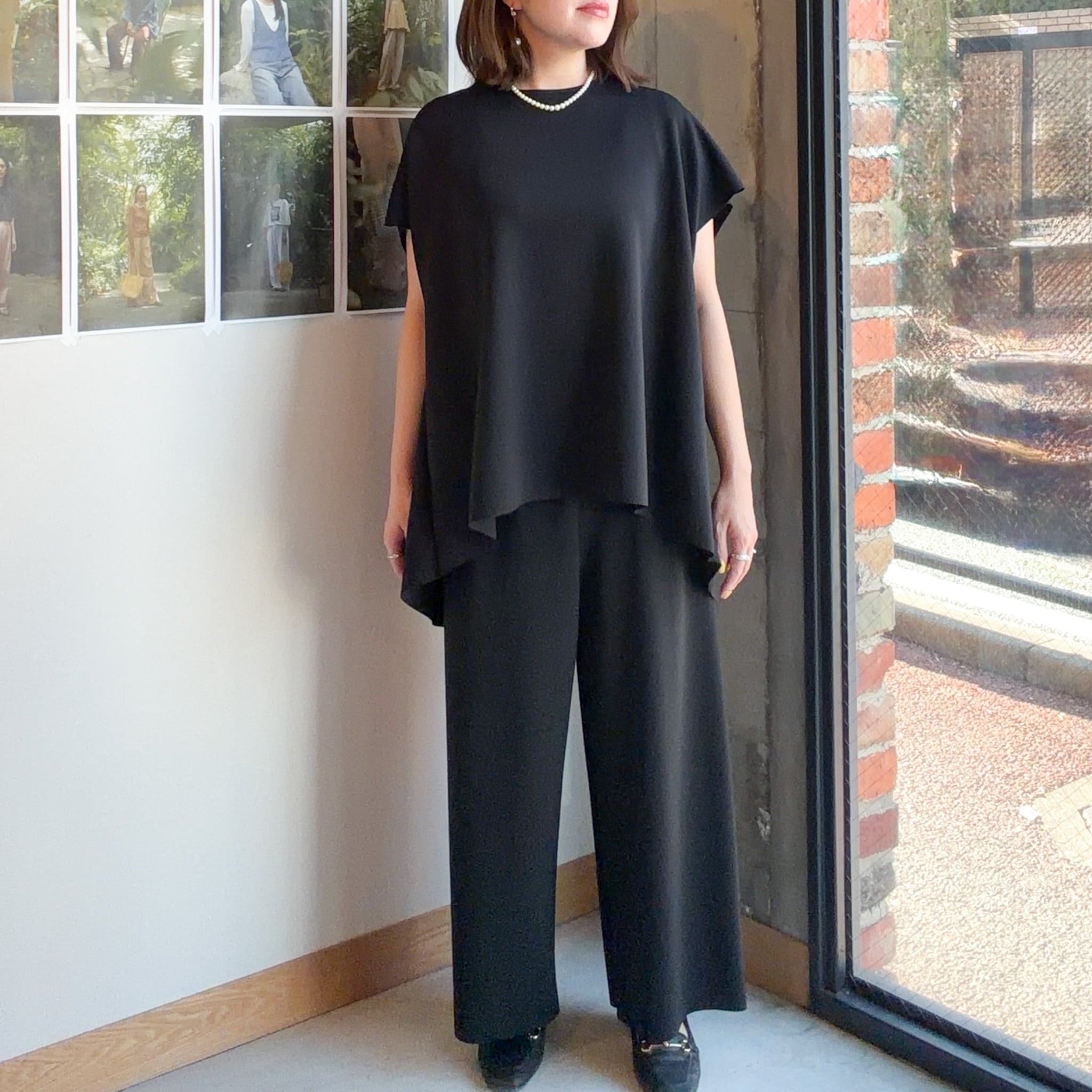 動くたびにきれいなドレープが生まれ、リラックス感がありながらも上品さを感じさせる一本です。