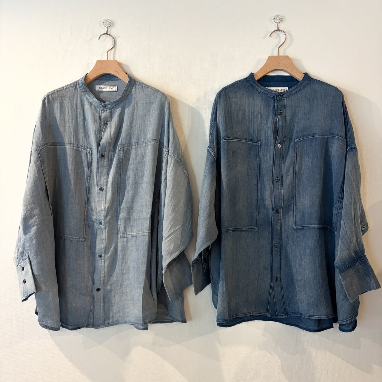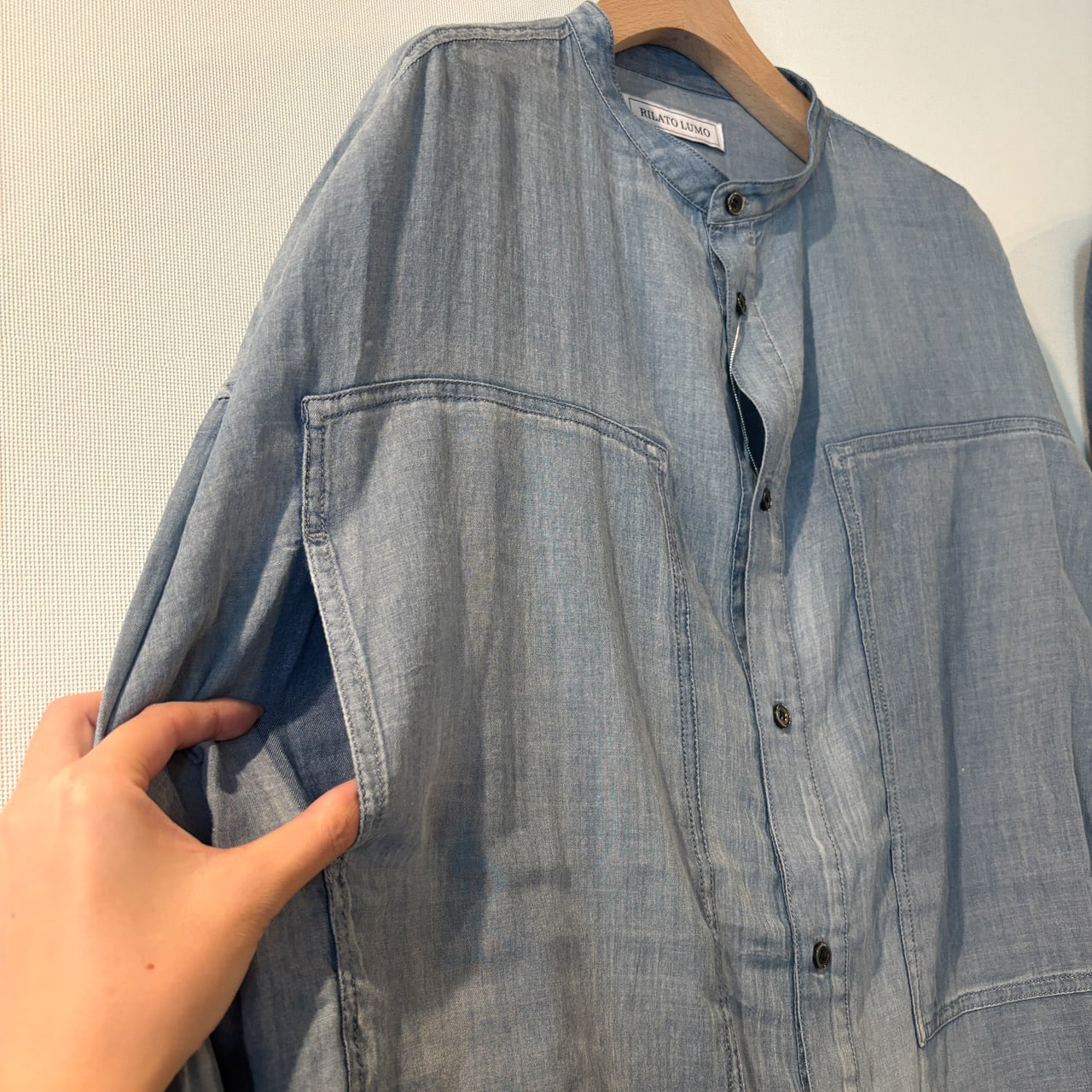 軽くて柔らかい“2.5オンス”のライトデニムを使用したノーカラーシャツ。