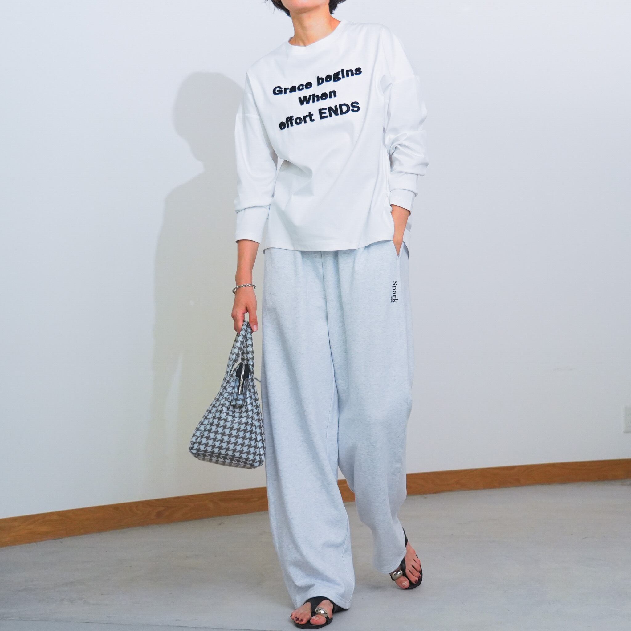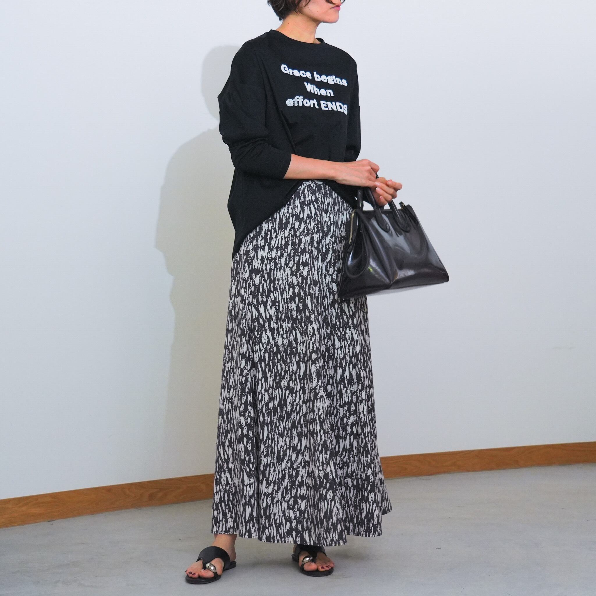 ブラシタッチで描いたロゴプリントが目を惹く、大人カジュアルなカットソー。
