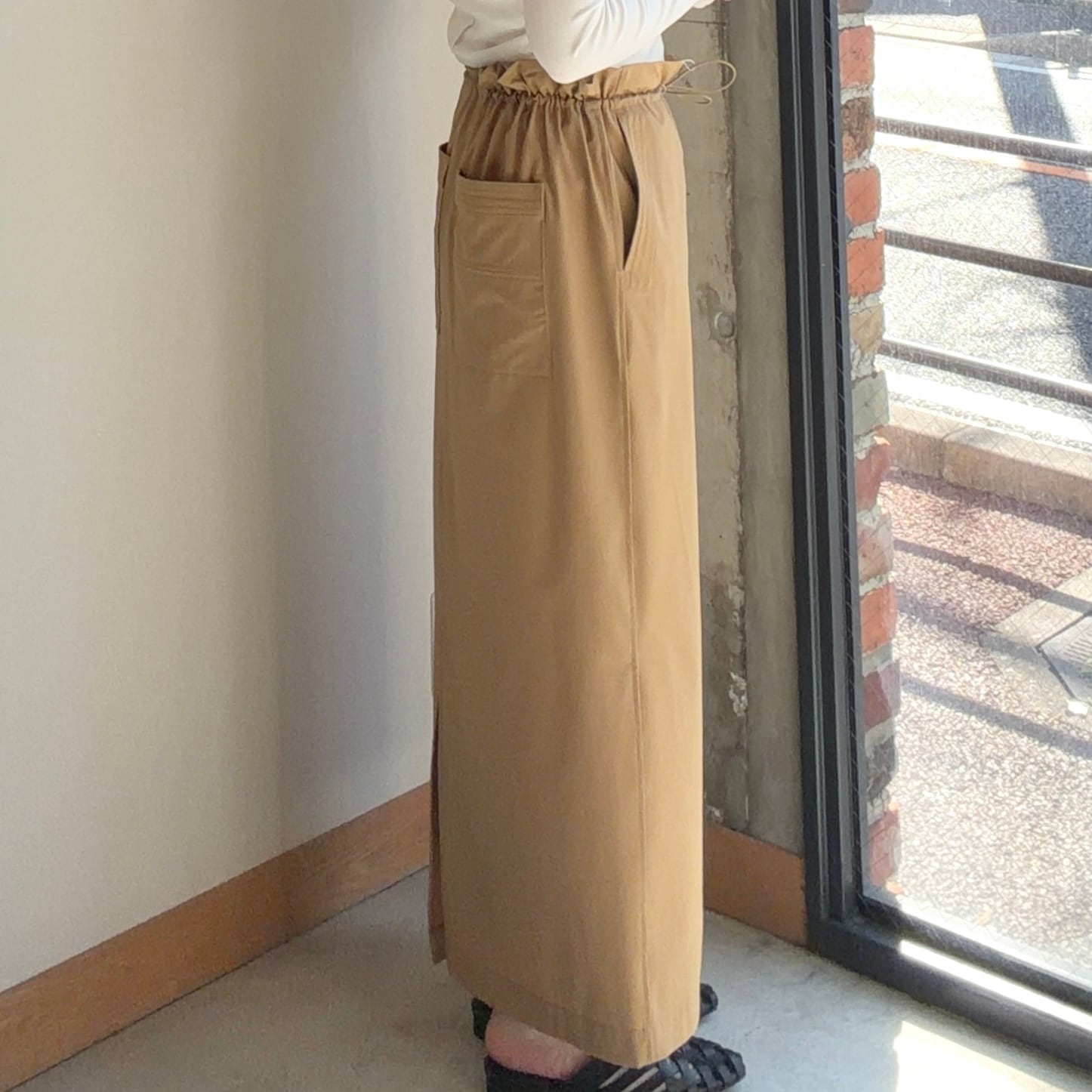 ストレスフリーな軽やかさと、さりげない遊び心を兼ね備えたストレッチカーゴスカート。
