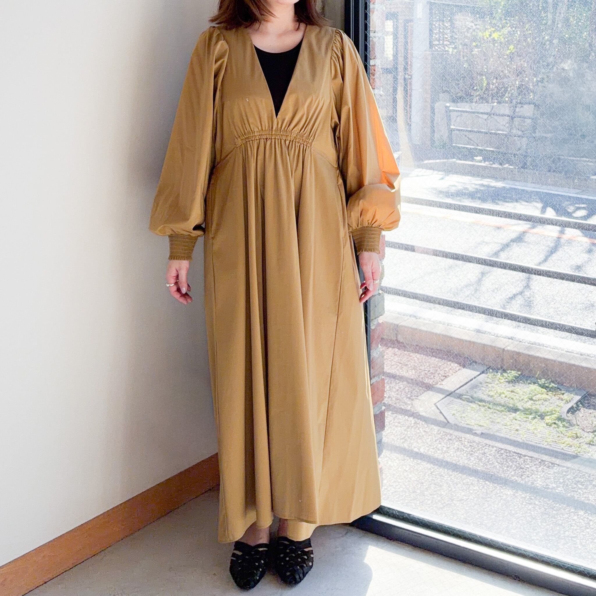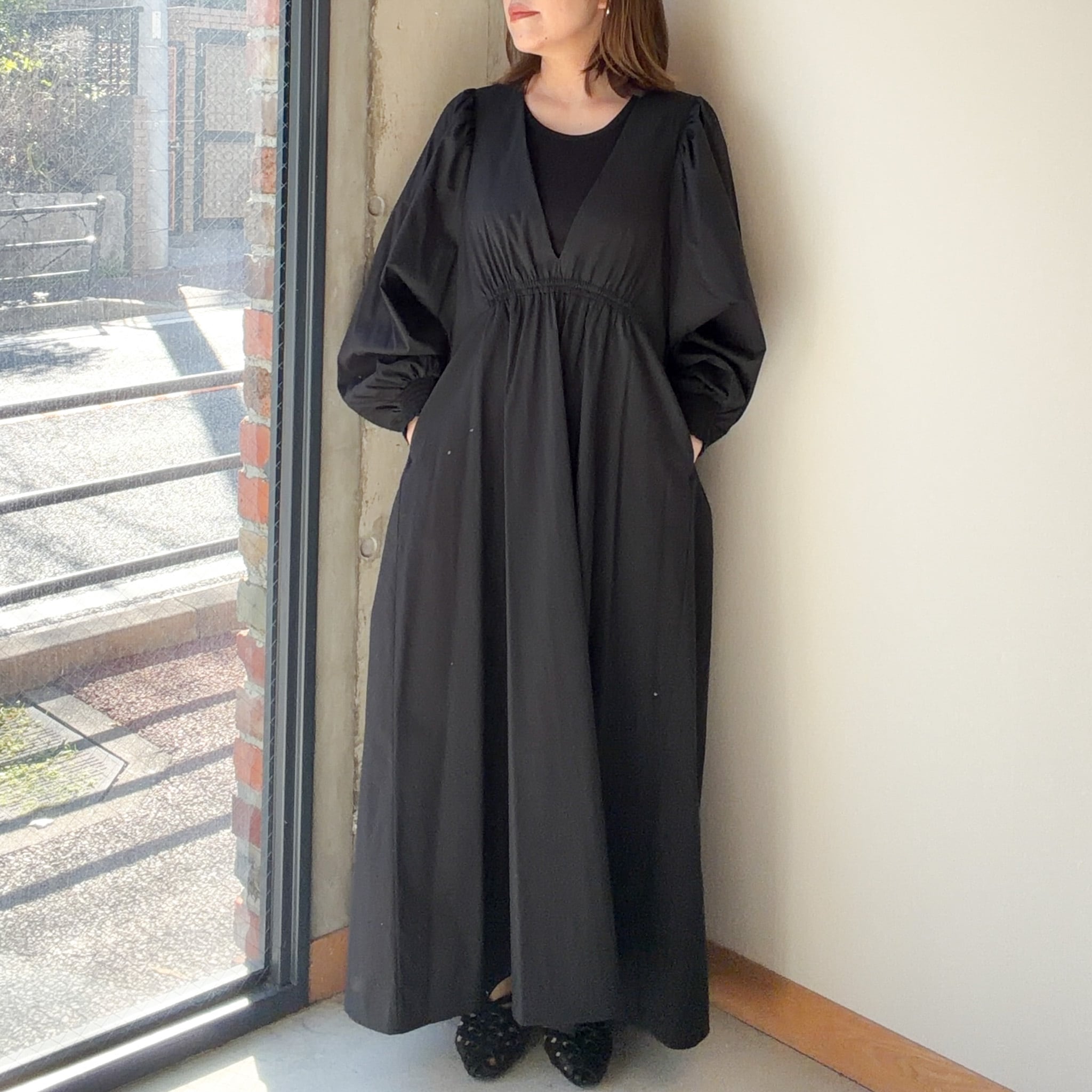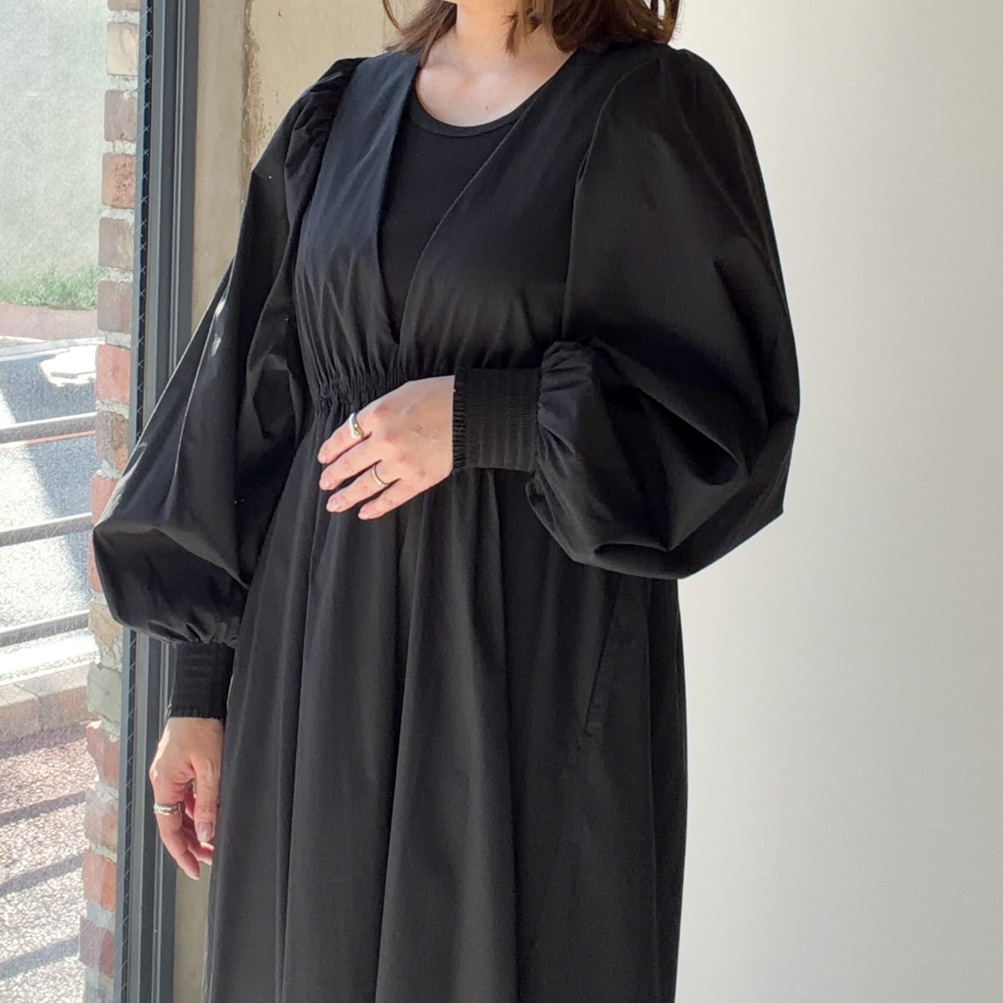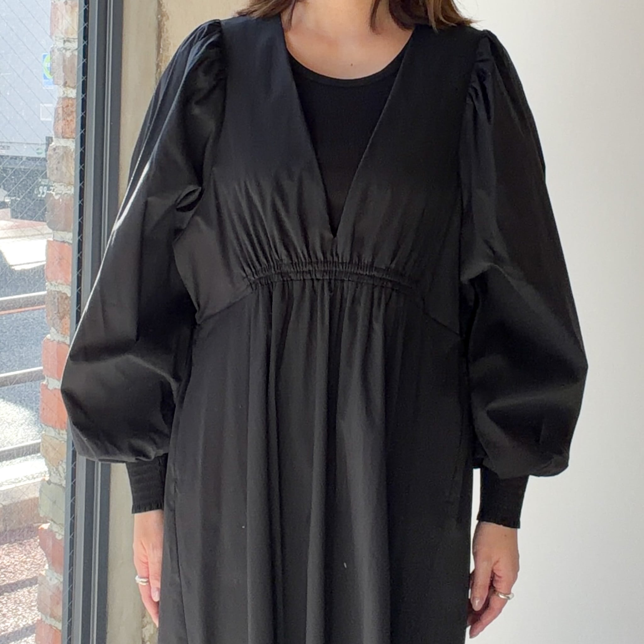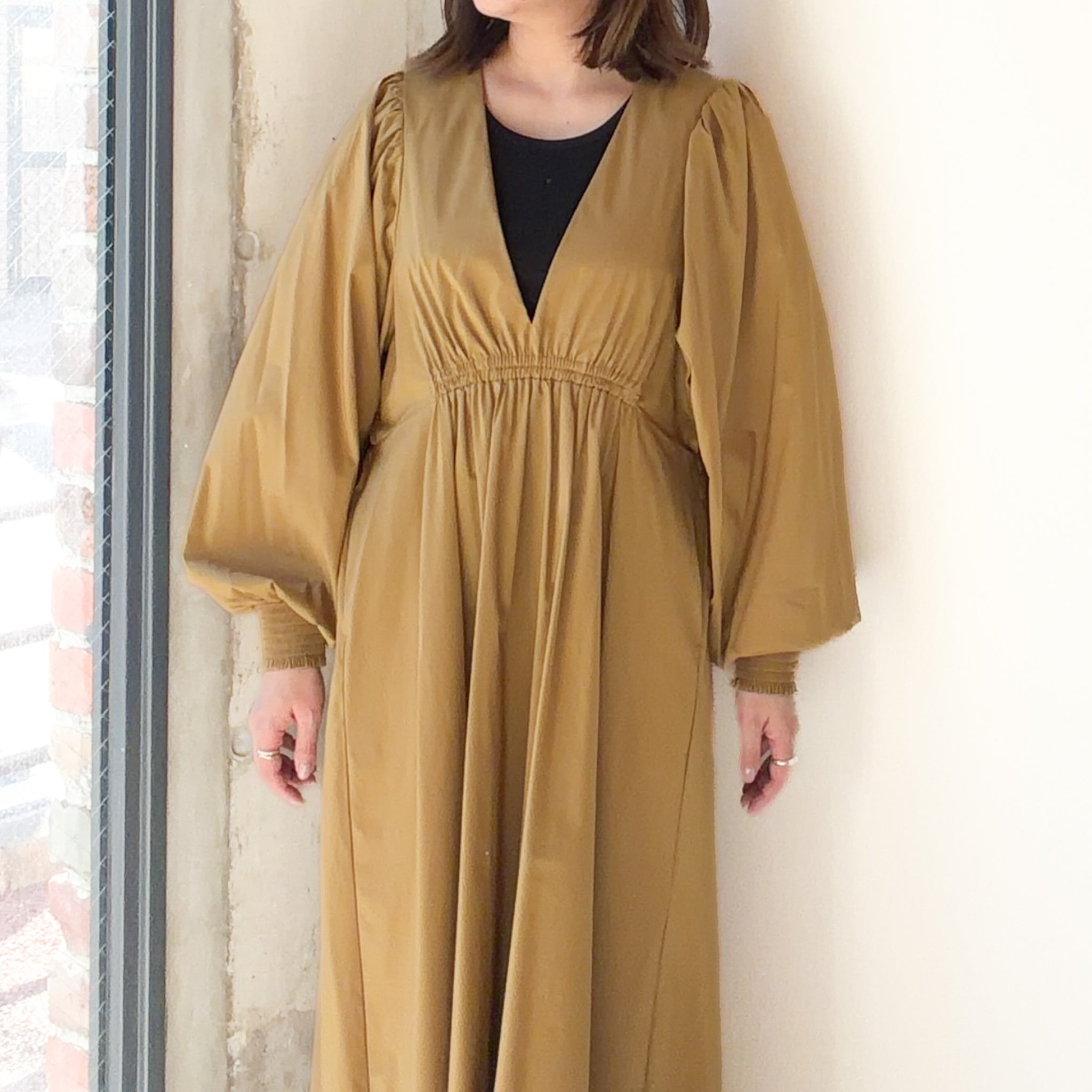 ふんわりとしたボリューム袖が、女性らしく柔らかな空気感を纏わせてくれるボリュームスリーブ深Vワンピース。