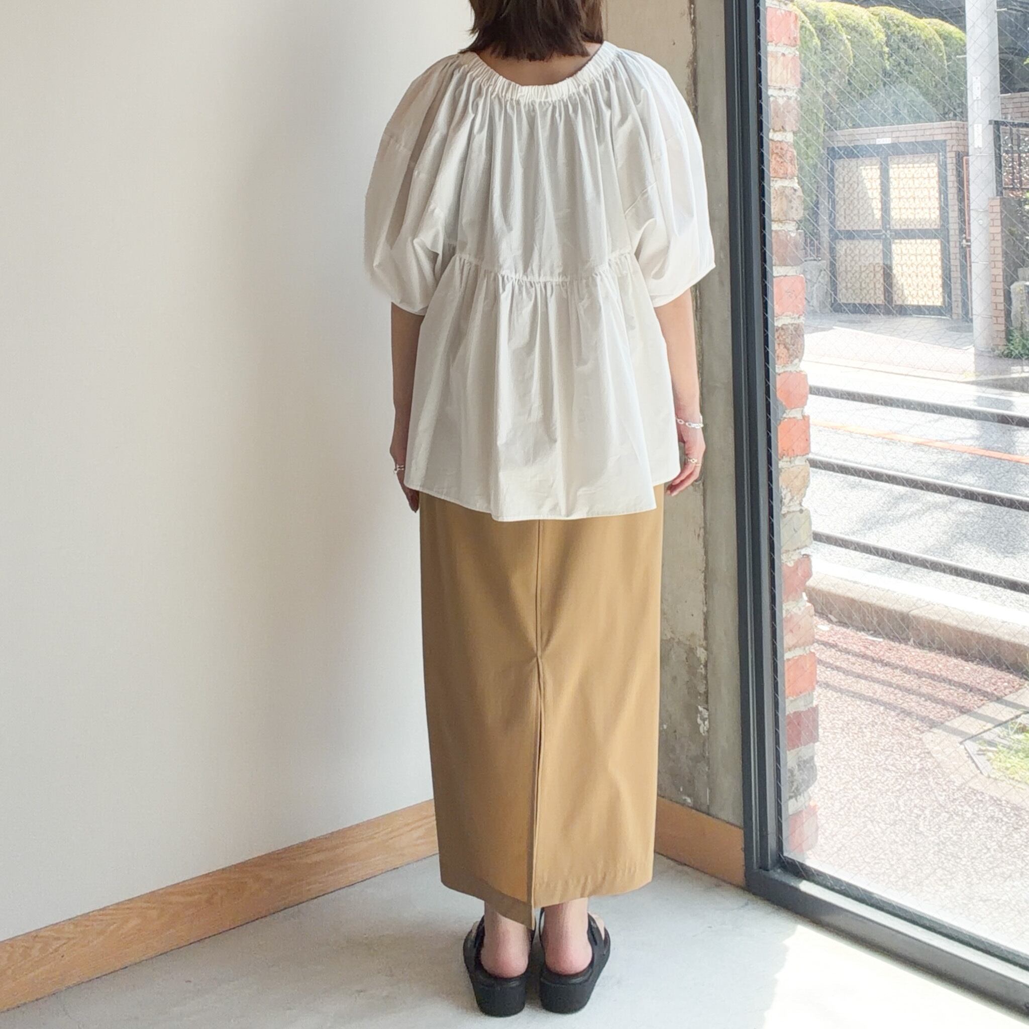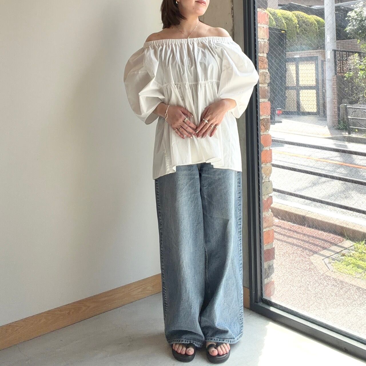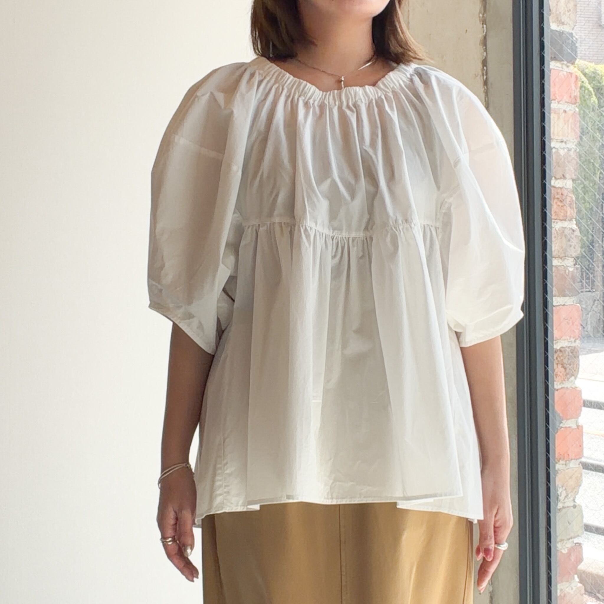 オフショルダーとしても着用できる2WAY仕様のブラウス。ふんわりとしたボリューム袖が、女性らしく華やかな印象を与えてくれます。