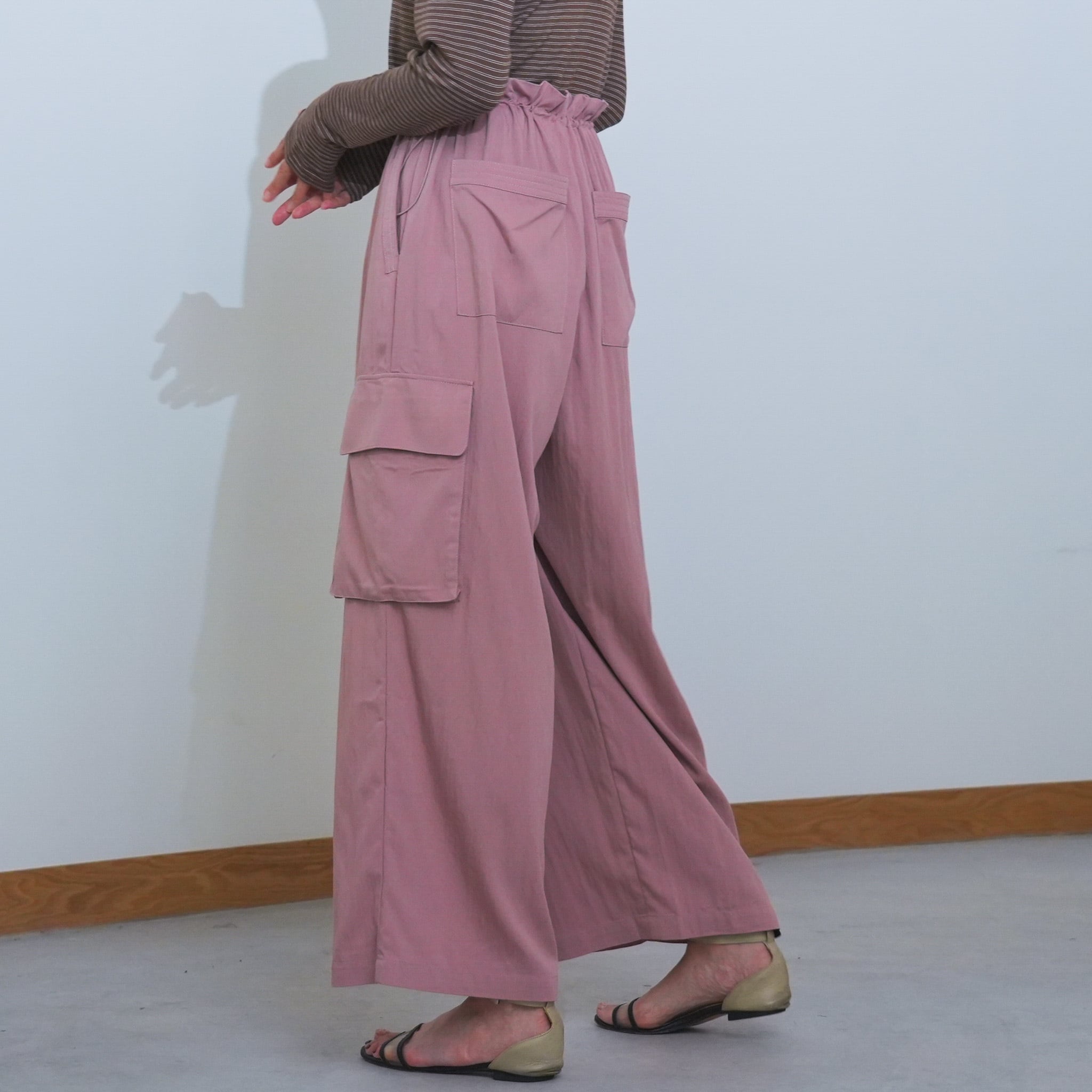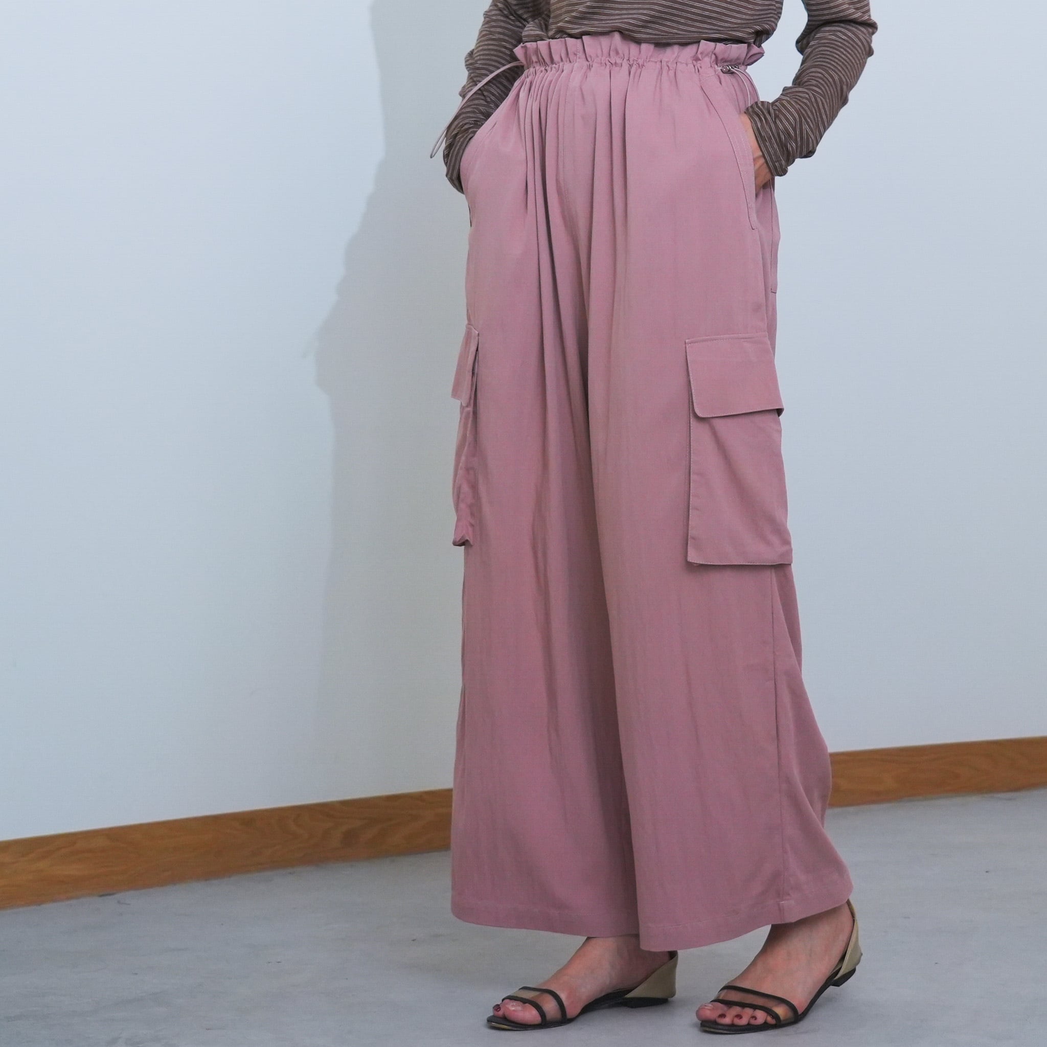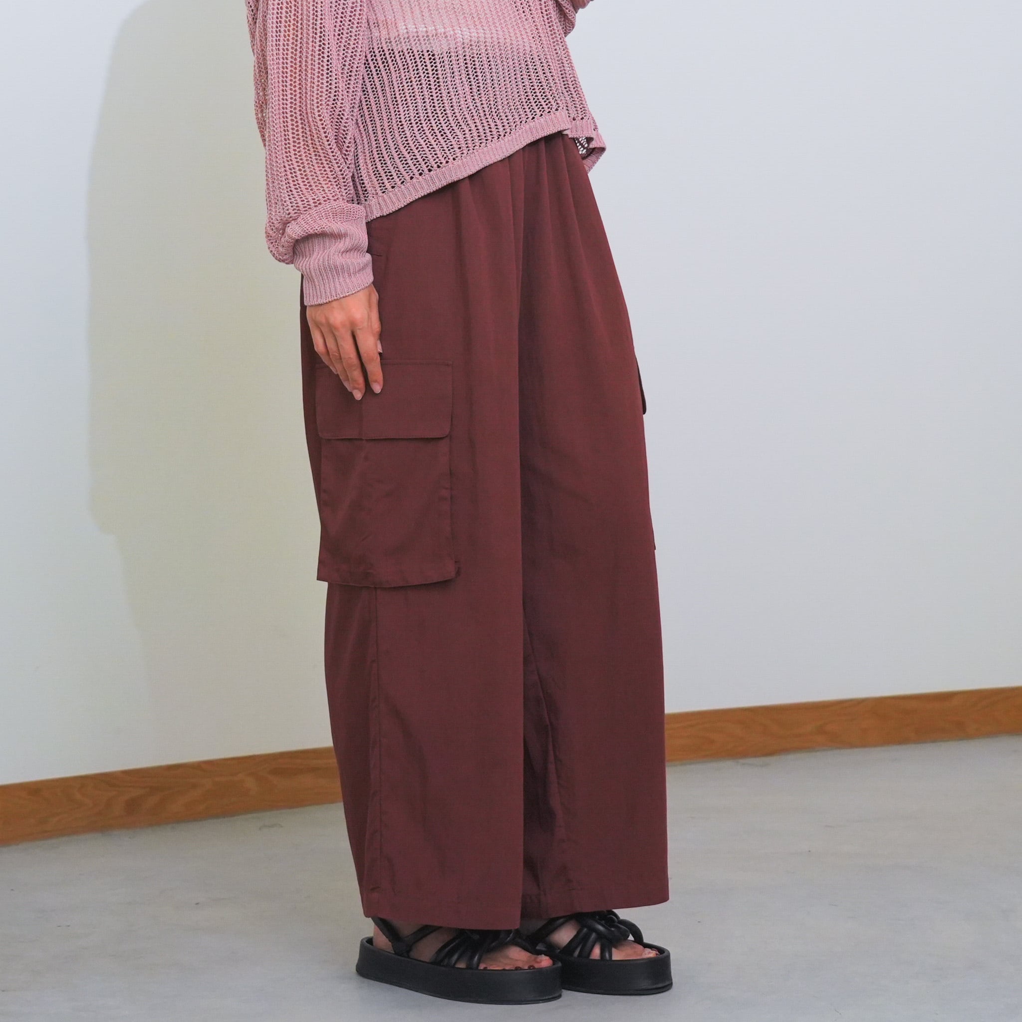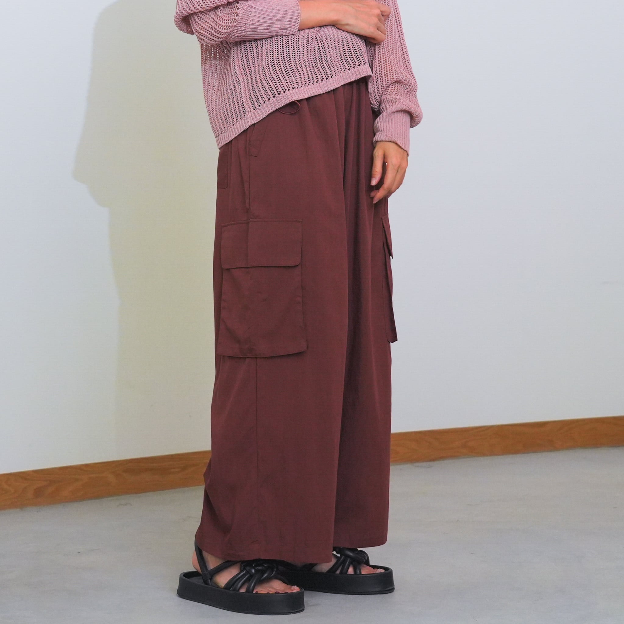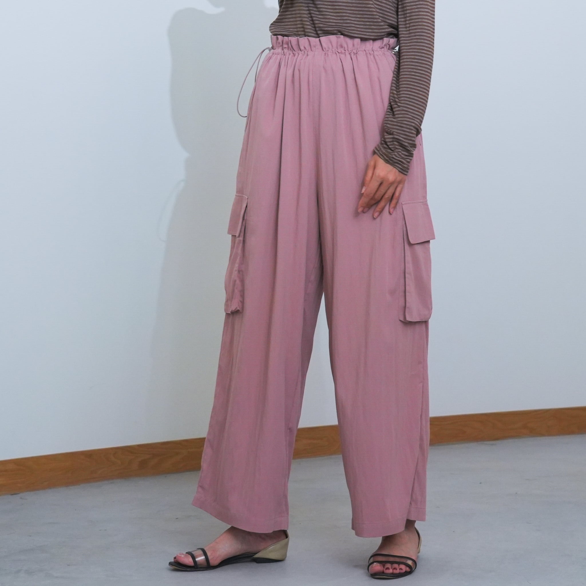 落ち感のあるしなやかな素材で大人っぽく仕上げたサイドドロストカーゴパンツ。